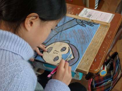 どこを彫って,どこを彫らないかのイメージをしっかりとふくらませてから,いよいよ顔から彫っていきます。