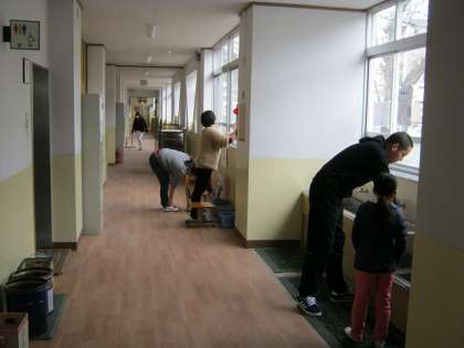 子どもたちの手が届かない高い部分の窓ガラスや換気扇フード,こびりついた廊下,階段の汚れを,きれいにしていただきました。