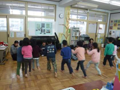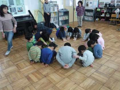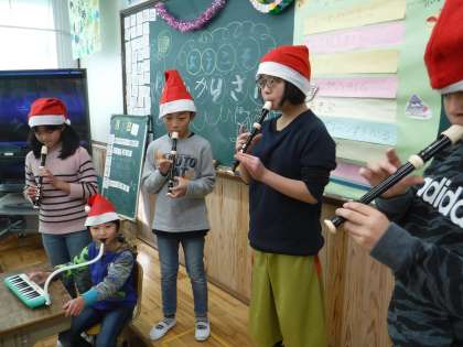 自己紹介をお互いにした後は,発表の時間でそらいろは,ジングルベルの演奏と「あわてんぼうのサンタクロース」の歌を発表しました。ひかり組さんは,「おばけのばけちゃま」を歌と踊りで披露してくれました。かわいいダンスでした!ハンカチ落としやなんでもバスケットをみんなで楽しみました。もちろん,そらいろのみんなが説明をしました。