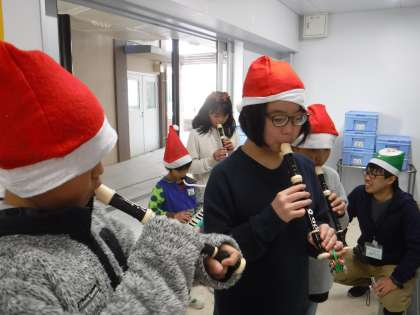 給食室にも「今年1年間ありがとうございました!」「おいしい給食ありがとうございました!来年もよろしくお願いします!」ジングルベルの演奏ととうもろこしのスワッグをプレゼントしました。
