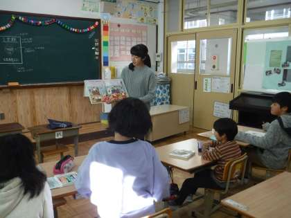 今朝は,1年のM先生が「だれも知らないサンタの秘密」という絵本の読み聞かせをしてくださいました。みんなクリスマスのことなら興味深々です。いい子を見ている調査員がいると聞いてみんないい姿勢になりました!