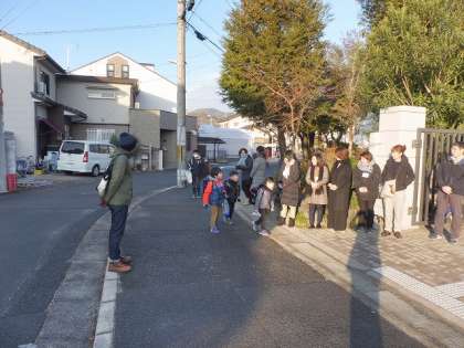 PTAと教職員が正門であいさつ運動を行いました。