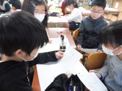 グループで交流すると,新しい考えが生まれて,いろいろな意見が出ていました。