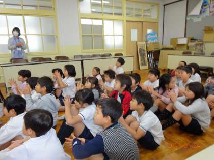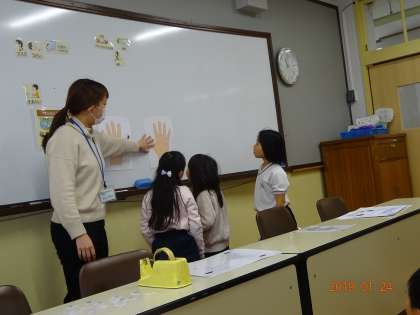 身体計測がありました。保健室の先生から,手洗いの仕方や,インフルエンザの予防についてお話をしていただきました。歌に合わせて,手洗いの練習もしました。これからも手洗い・うがいをしっかりして,インフルエンザ予防をしていきましょう。