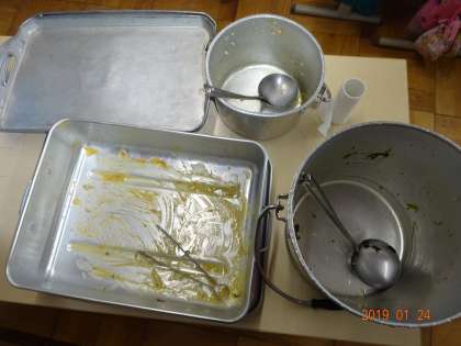 今日は,スチームコンベクションオーブンで作っていただいた「さわらの西京焼き」でした。「おいしい!」「いつもと食缶が違うなぁ」と言いながら,今日も完食です。