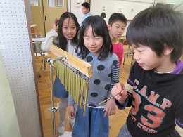 まほうの音を考えるために,たくさんの楽器の音をならしてみました。