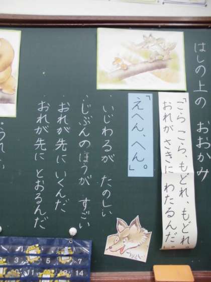 1年生は「はしの上の おおかみ」という教材を使って『誰にでも温かい心で接し,仲良くしようとする心情を育てる』ことについて学習しました。