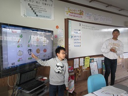 子どもたちは,尋ね方や答え方を繰り返し話すなかで,楽しく外国語の学習をすることができました。