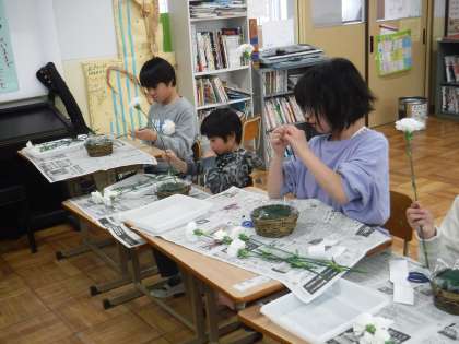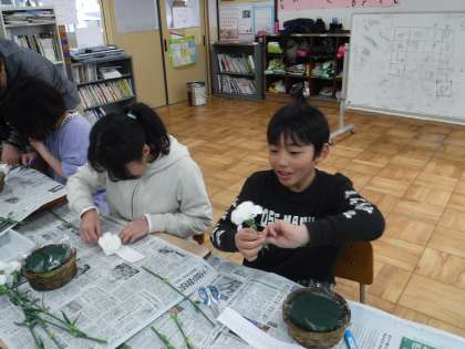 花育の方が来てくださって「ねこちゃん」をアレンジしました!みんなひとつひとつお話を聞いてオアシスにさしていきました。