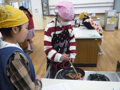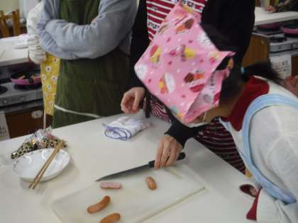 今日が最後のクラブ活動でした。「たこさんウインナー」を作りました。お弁当のおかずになるものを作りました。小さなたこさんや栄養教諭のM先生が「かにさんもできるよ!」と見本を見せてくださいました。