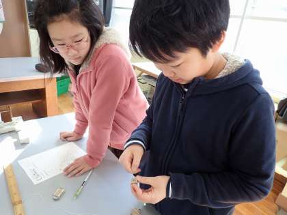 今日は,おもりの重さを変えての実験。