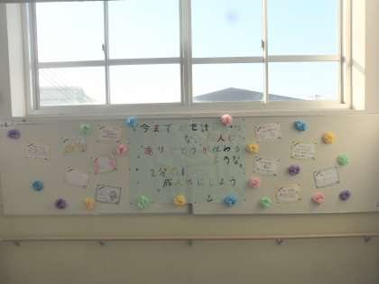 学年の掲示板には,2分の1成人式に合わせて,担任や子どもたちがお世話になっている先生,お世話になった先生からのメッセージを掲示しました。