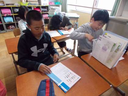 新しい教科書やノートが届きました!嬉しそうです。