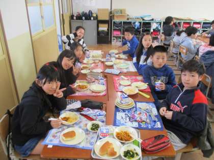 毎年1年最初の献立はミートスパゲティ!子ども達に大人気です!