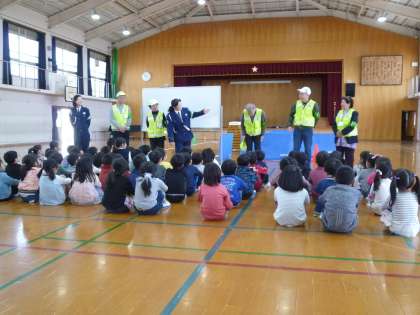京都市北警察署と地域交通安全活動推進委員の方々が学校に来て下さり,1年生に交通安全教室を開いて下さいました。
