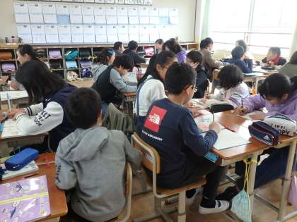 間の文を班で考え,発表しました。