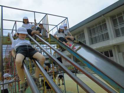 何度も何度も滑り台を滑っている表情は,きらきら笑顔でした。