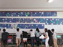 図画工作科で描いた「まぼろしの花」の鑑賞の様子です。