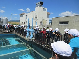 浄水場に行き,琵琶湖からくる水がどんどんきれいになっていく様子を直接見て,子どもたちもとても驚いていました。