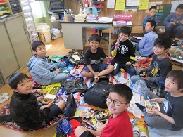 おうちの方に作っていただいたお弁当を,とてもおいしそうに食べていました。