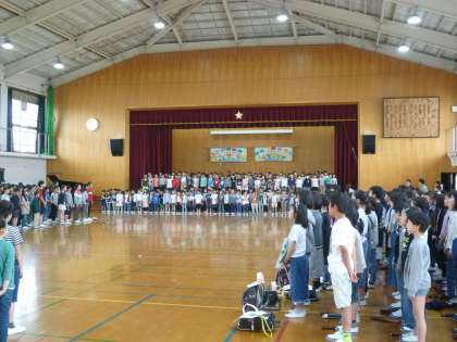 始まりはいつもの児童会のテーマソングです。