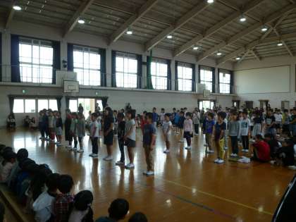 見ている1年生の中には,合わせて踊っている子もたくさんいました。