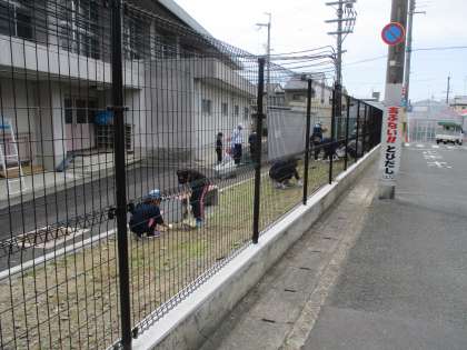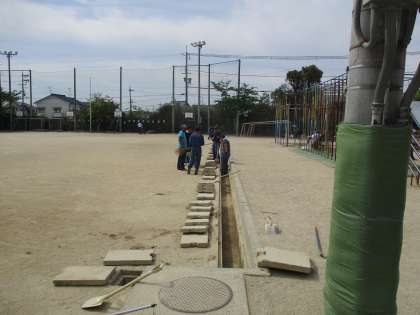 運動場の側溝、ふたを開けるのもたまった泥を掻き出すのも重労働です。