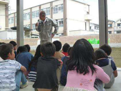 サツマイモが元気いっぱい育つように地域の方に協力していただきました。