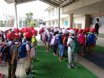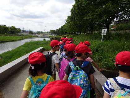 今日は待ちに待った遠足でした!小学校に入学してから初めての遠足で,朝から子どもたちは楽しみにしている様子でした。お天気にも恵まれて,いよいよ出発です。長い道のりをみんなで頑張って歩きました!