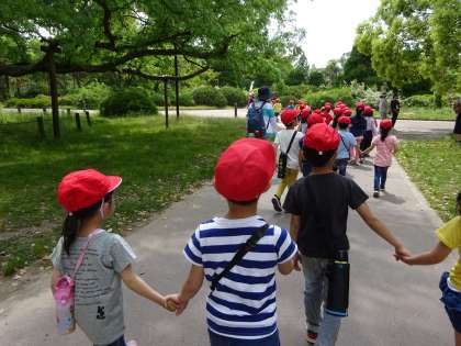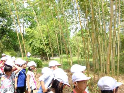 芝生で少し休憩をしてから,みんなで植物園の中を歩きました。竹笹園では,たくさんの竹やたけのこがあり,「たけのこを見つけた〜!」と言って,子どもたちは喜んでいました。