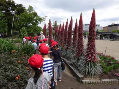 植物園には,おもしろい形やきれいな色やかわいいお花がたくさんありました。バラ園には様々な色のバラがあり,「ぼくはあの黄色のバラが好き!」「私は赤いバラがきれいだと思う!」と言いながら楽しく周っていました。