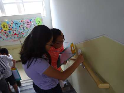 大ぞうさんの滑り台の角度は40°でした。公園にある滑り台は何度ぐらいなのでしょうか。熱心に調べる姿がありました。