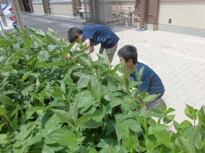 まずはモンシロチョウのたまごを探します。