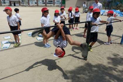 体育科では,てつぼうあそびの学習を行っています。