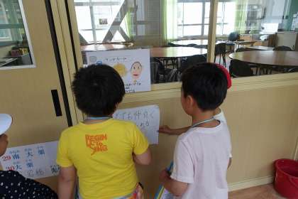 書いてある内容を読み上げる姿があちらこちらでみられました。