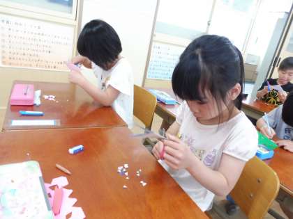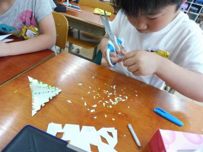 2・3回三角形に折って模様をかき,チョキチョキ…