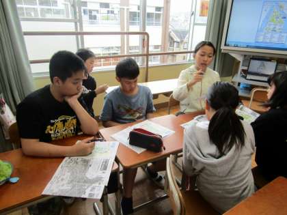 限られた時間の中で,どこを回ろうか班で相談しました。