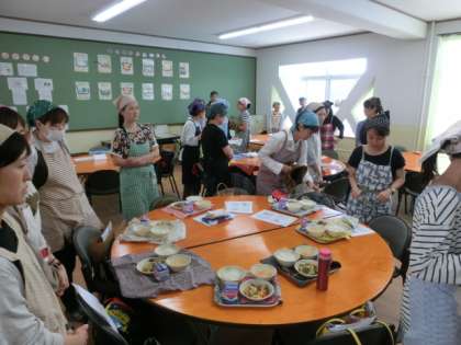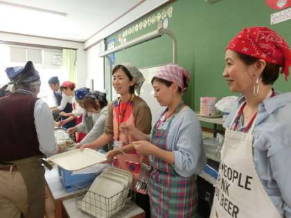 みなさんの中からボランティアで給食当番になってもらい,配膳も手伝ってもらいました。