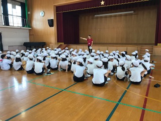今日は,反復横跳び,上体おこし,立ち幅跳び,長座体前屈をしました。