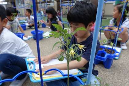 先週植えた,トマトの観察をしました。