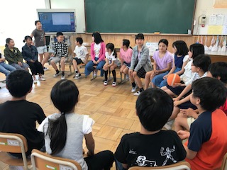 教室で,「爆弾ゲーム」をしている子どもたちです。