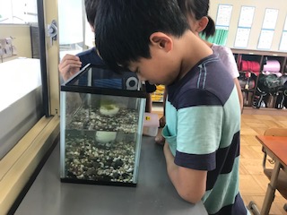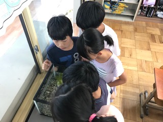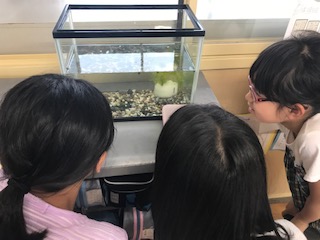 休み時間になるとメダカの様子を気にかけてじーっと観察しています☆