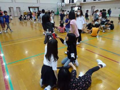 キャンプファイヤーの練習では,レク係の人たちが中心になってうまく進めてくれました。本番でも,学年みんなで楽しみ絆を深められたらいいなと思います。
