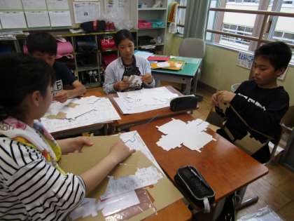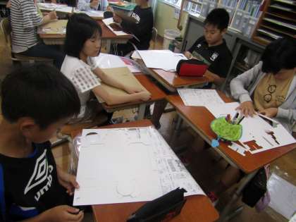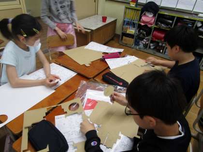クルクルと針金を回すと上下に動く仕組みを使って,ストーリー性のある工作を考えていきます。出来上がりが楽しみです。