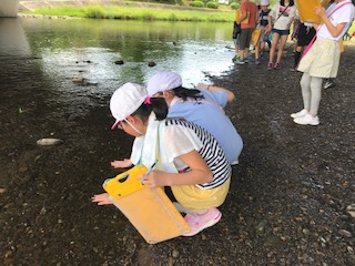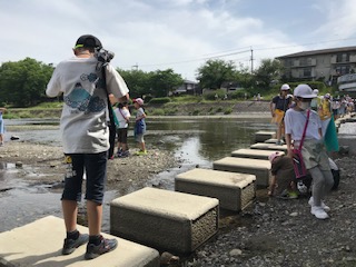 渡った後は,川の中にいる生き物をみつけたり,ゴミがあることに気が付いたり,水をさわってみてとても冷たいということを感じたりしていました。