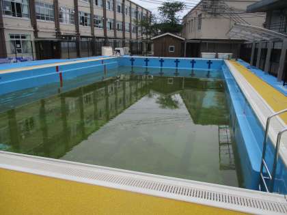 前日から体育主任の先生がプールの水を抜いてくれていました。