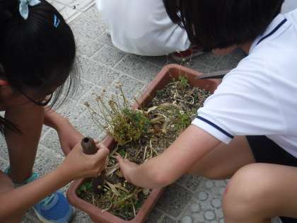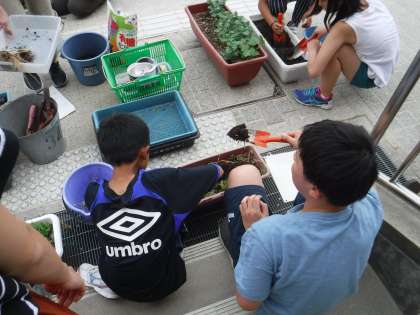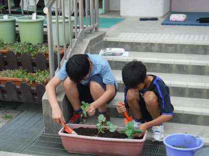 園芸委員会では,プランターの整理や土をきれいにしてその後,ひまわり・百日紅・マリーゴールドの種をまきました。これから常時活動で水やりをしていきます。