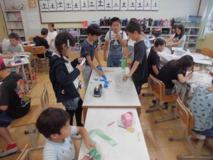 図画工作科で「ふわふわふんわり」の単元に取り組みました。