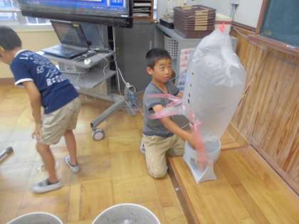「まんなかひもでむすんでみよ。」「それいいな!」