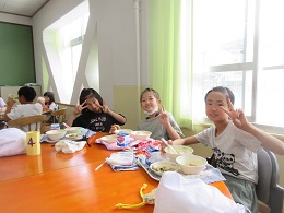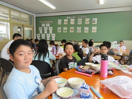 子どもたちは,ひさしぶりにランチルームで給食を食べたので,とてもうれしそうにしていました。